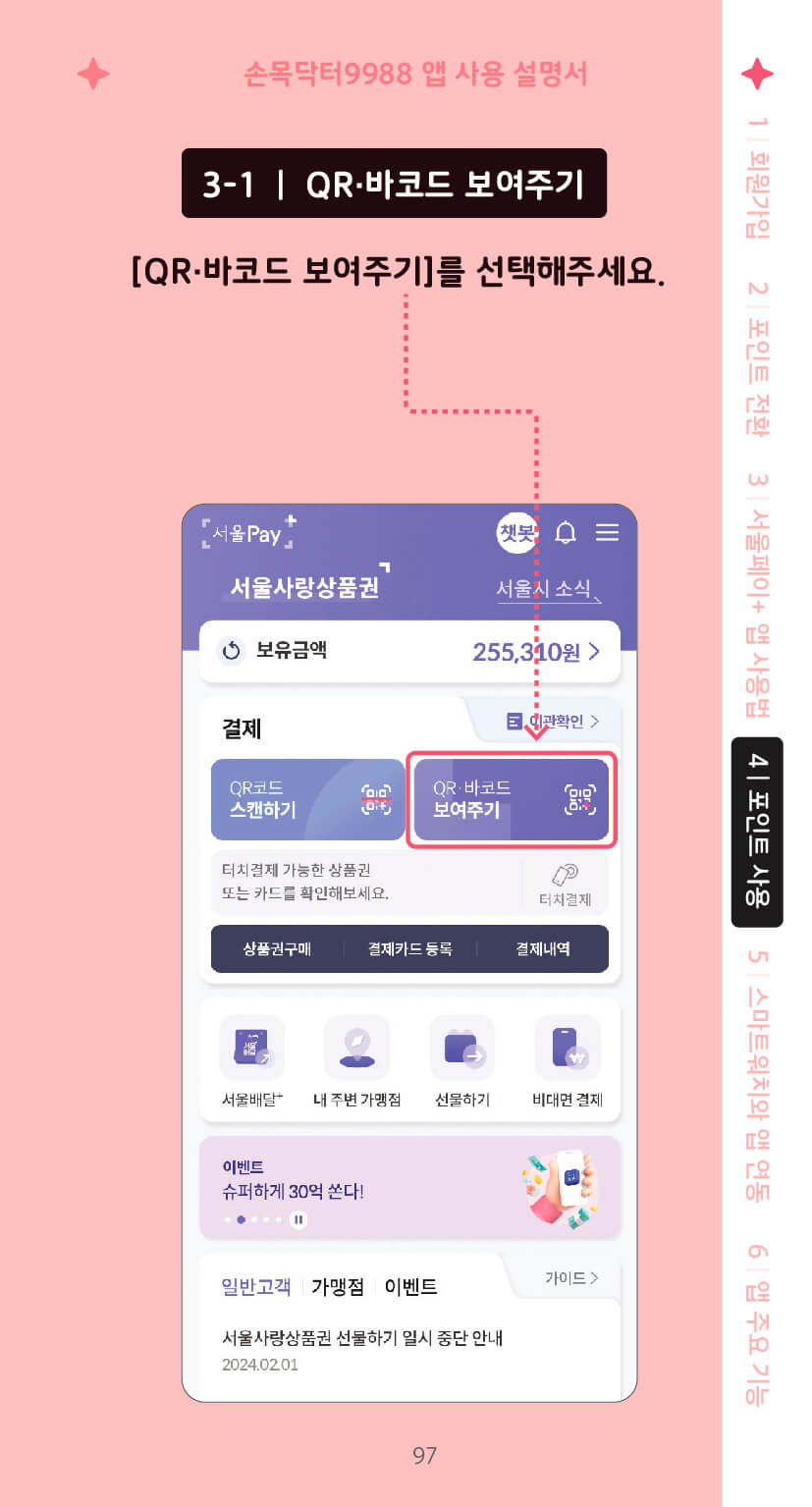 2-3. 전환된 포인트 사용하기(QR/바코드 보여주기)
