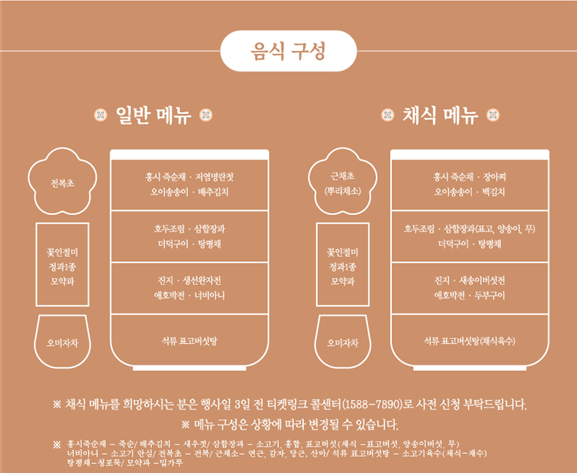 ※ 채식 메뉴를 희망하시는 분은 행사일 3일 전 티켓링크 콜센터(1588-7890)로 사전 신청 부탁드립니다.